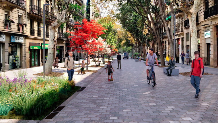 Con esta reforma, el Ayuntamiento avanza en su objetivo de impulsar calles más habitables, sostenibles y orientadas a las personas, reforzando la red de espacios públicos pacificados en el Eixample.