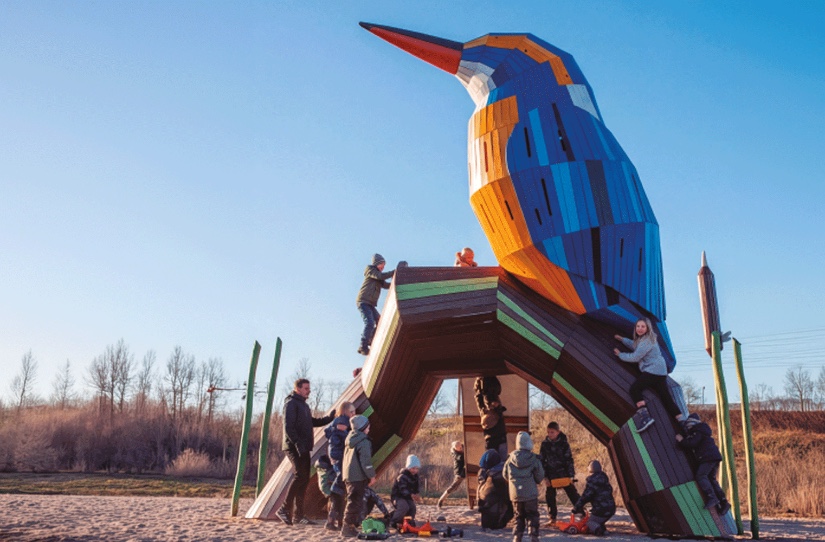 Las estructuras combinan elementos de juego, arte y paisaje urbano