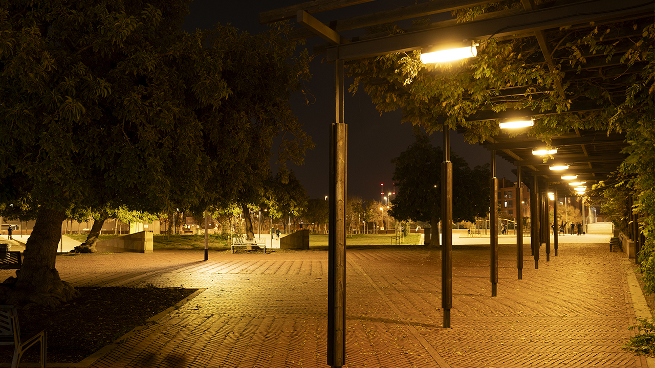 Instalación de luminarias HFL de Carandini con Dynamic White en la pérgola del Parc del Molinet.