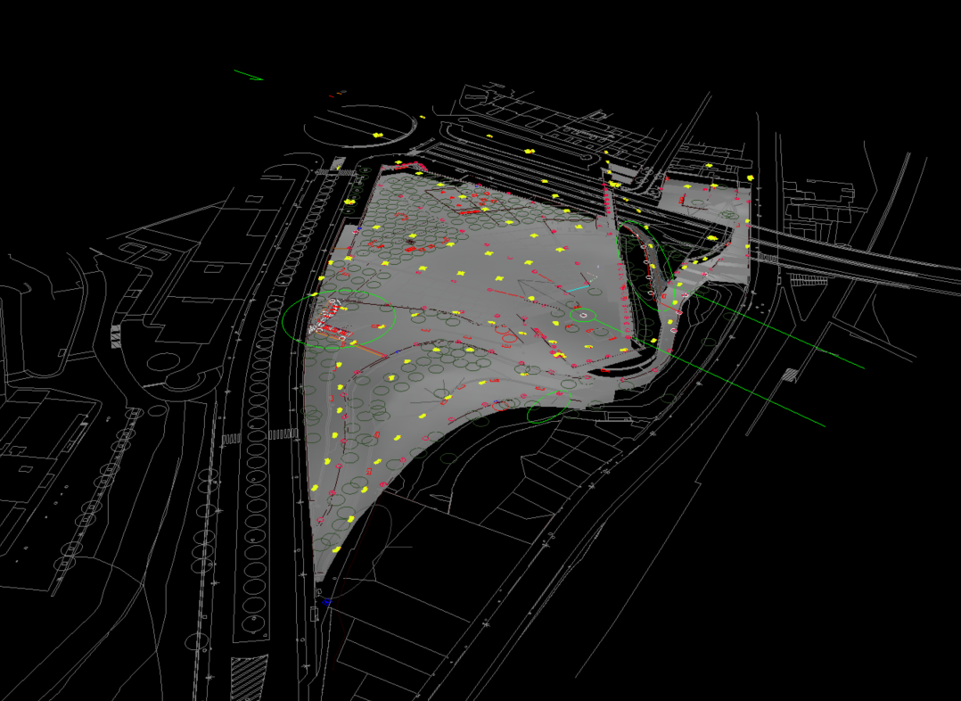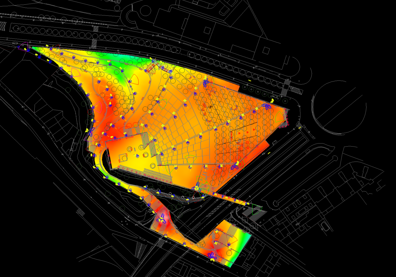 Rendering en colores falsos que representan los distintos niveles lumínicos de las zonas del parque.