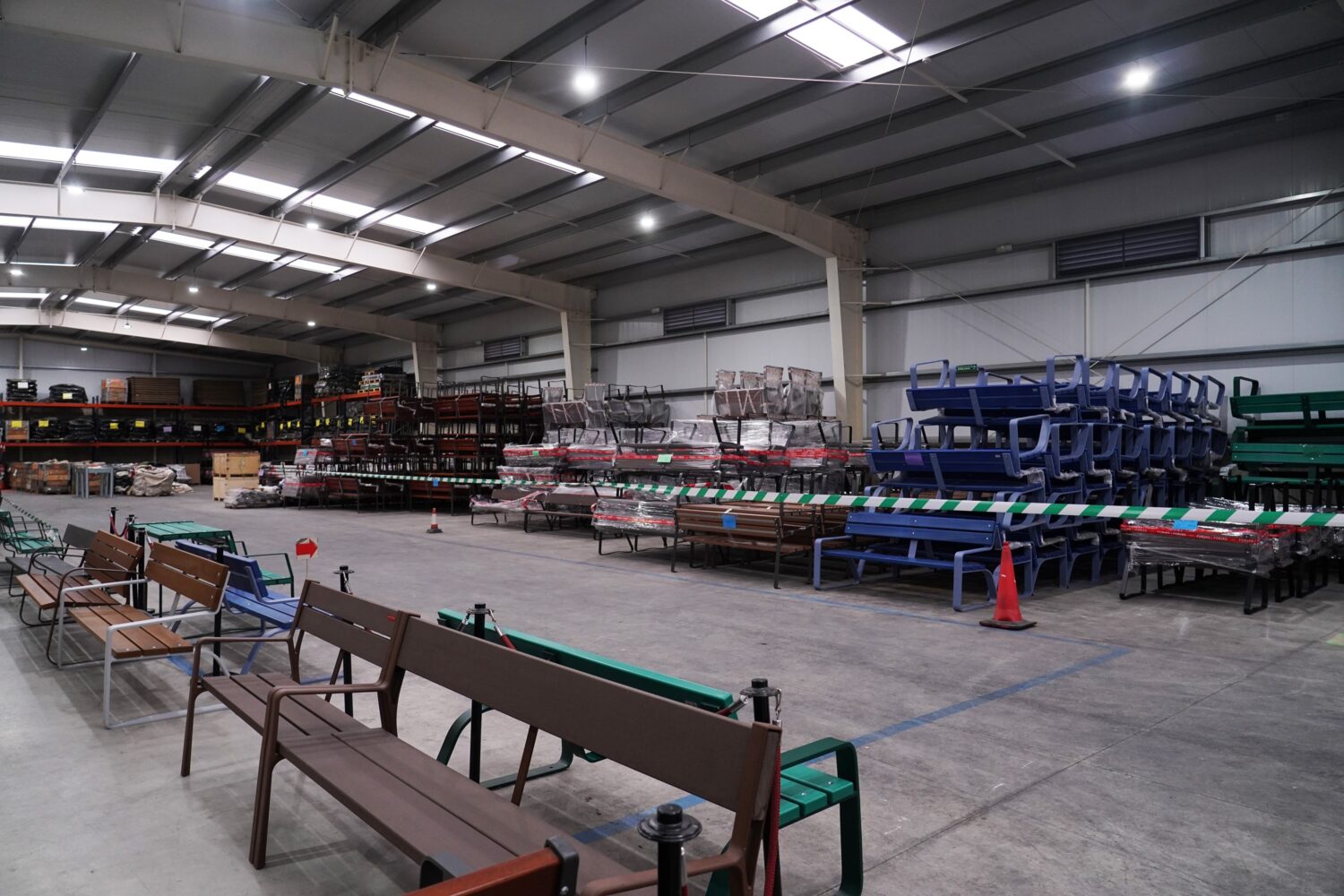 Desde su puesta en marcha en 2019, el Almacén de Villa centraliza los trabajos de almacenamiento, conservación, clasificación, reparación y reutilización de miles de elementos del espacio público, como bancos, bolardos, vallas, aparcabicis, barandillas, jardineras, pérgolas o mesas.