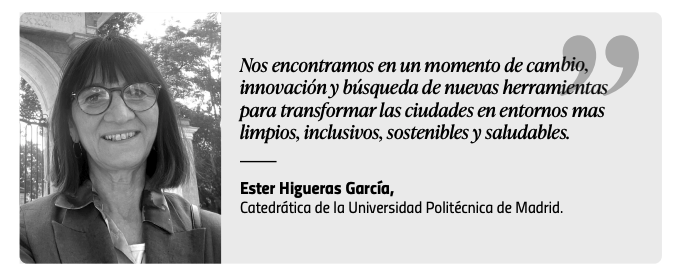 Desde esta perspectiva, uno de los grandes retos pasa por transformar la ciudad consolidada en barrios más complejos, cohesionados y saludables, capaces de mejorar su eficiencia y reducir la contaminación atmosférica y acústica. Como señala Ester Higueras, “los nuevos desarrollos deben cumplir estos retos de sostenibilidad y eficiencia, pero la gran transformación está en la renovación-regeneración y adaptación de los barrios de la ciudad actual”.