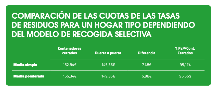 Los resultados muestran como en los municipios con recogida selectiva puerta a puerta, las cuotas a pagar son alrededor de un 5% inferiores a las de los municipios con sistema de recogida selectiva en contenedores cerrados.